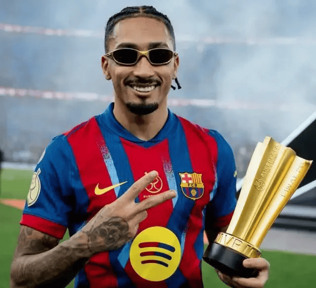 在刚刚结束的西班牙超级杯决赛中,巴塞罗那击败皇家马德里,连续第四次捧起奖杯。赛后,西班牙媒体将“英雄”与“比赛改变者”的称号,毫无保留地献给了梅开二度的拉菲尼亚。这一刻的赞誉,与几年前他深陷自我怀疑、几乎离队的境遇形成了戏剧性的反差。而这一切转变的钥匙,源自一个人的坚定信任——主帅汉斯·弗里克。